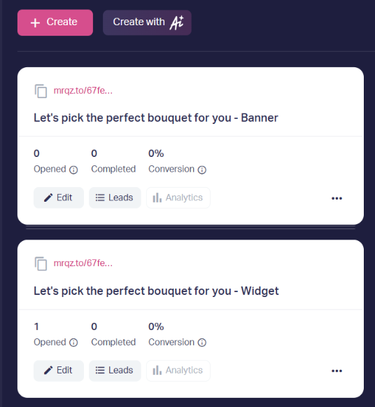 Try different quiz installation formats to find the most effective one. Go to the Marquiz panel