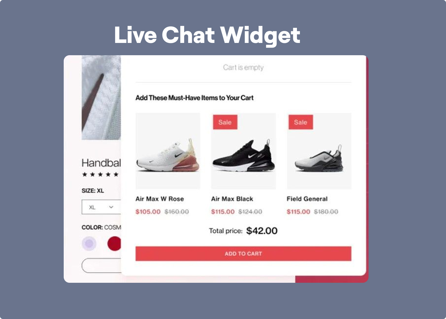 This widget appears right after someone adds a product to their cart. It confirms the action and often shows the cart total, product image, and buttons to keep shopping or check out. It keeps users in the loop without pulling them away from the page. It’s a small touch that makes the buying process smoother and helps reduce cart abandonment.
